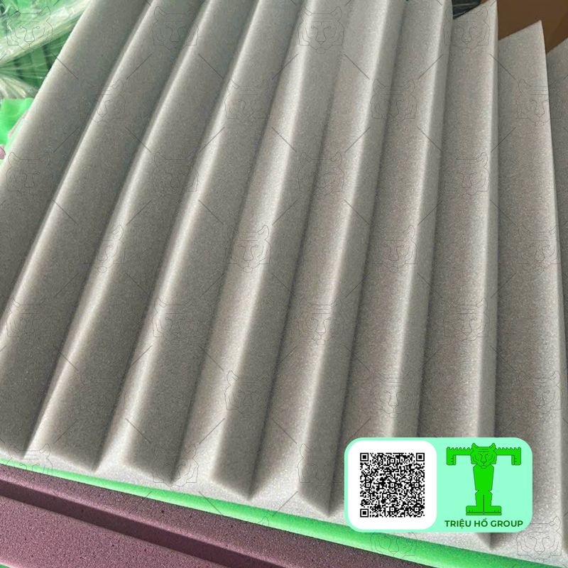 | Mút Tiêu Âm Xẻ Rãnh | Bề mặt có các rãnh cắt ngang, xéo hoặc đa hướng, giúp khuếch tán âm thanh. | Âm trung và cao tần | Phòng thu âm, phòng nghe nhạc, phòng chiếu phim, không gian cần kiểm soát âm thanh chi tiết | Tạo ra các đường cắt không đồng nhất giúp khuếch tán âm thanh tốt hơn |